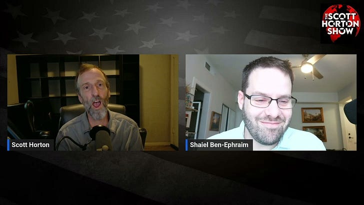 The Scott Horton Show PremiumSheldon Richman on the Long History of Jewish Anti-Zionism0:00Current time: 0:00 / Total time: -46:01-46:01Paid episodeThe full episode is only available to paid subscribers of The Scott Horton ShowSubscribe to listenSheldon Richman on the Long History of Jewish Anti-ZionismScott HortonDec 18, 2023∙ Paid2ShareContinue reading this post for free, courtesy of Scott Horton.Claim my free postOr purchase a paid subscription.The Scott Horton Show PremiumLibertarian foreign policy, mostly. A day early and ad-free for all paid subscribers.Libertarian foreign policy, mostly. A day early and ad-free for all paid subscribers.SubscribeListen onSubstack AppRSS FeedAppears in episodeScott HortonRecent Episodes3/12/26 Shaiel Ben-Ephraim: A Look Inside Israel During the War with Iran1 hr ago • Scott Horton3/5/26 Robert Pape on the Limits of Air PowerMar 7 • Scott Horton3/5/26 Matthew Hoh on the Lie That Iran Killed Hundreds of Americans in IraqMar 7 • Scott Horton3/3/26 Daniel Davis on Trump’s Dangerous New War with IranMar 4 • Scott Horton2/27/26 Andy Schoonover on Fixing the Healthcare System Without Waiting for PoliticiansMar 4 • Scott Horton2/27/26 Larry Johnson Predicts Trump’s War on Iran and Exposes the Lies It’s Built OnFeb 28 • Scott Horton2/20/26 Charles Goyette on the Lies that Built the American EmpireFeb 23 • Scott Horton2/6/26 Matt Williams on What the Epstein Files Reveal about the Global ElitesFeb 7 • Scott Horton